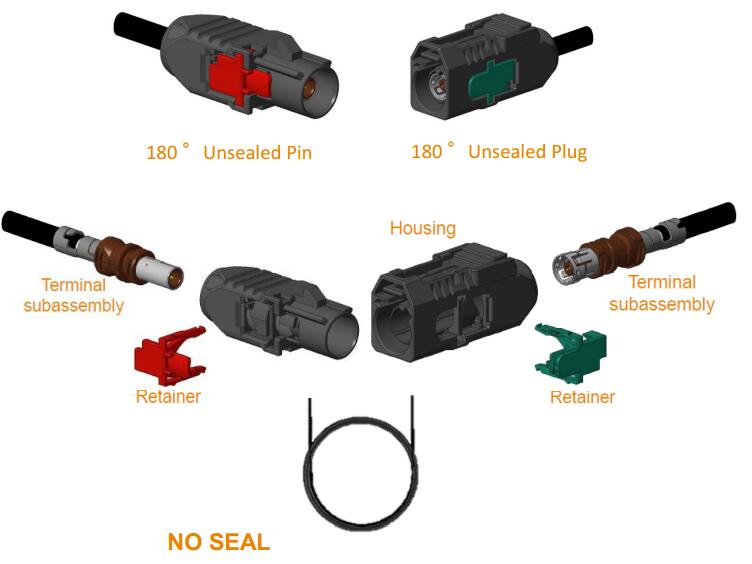 常見的Fakra連接器由塑殼,外導體,中心導體,絕緣體,壓接套管(僅線束端連接器)和二次鎖(僅線束端連接器)組成。