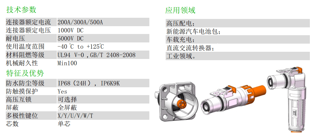 此系列 觸摸安全型 1-3 位大電流連接器和高壓線纜帶有集成 HVIL 和多線路選項(xiàng),符合 SAE J1742, LV215-1規(guī)范,額定電流可高達(dá)500A。
