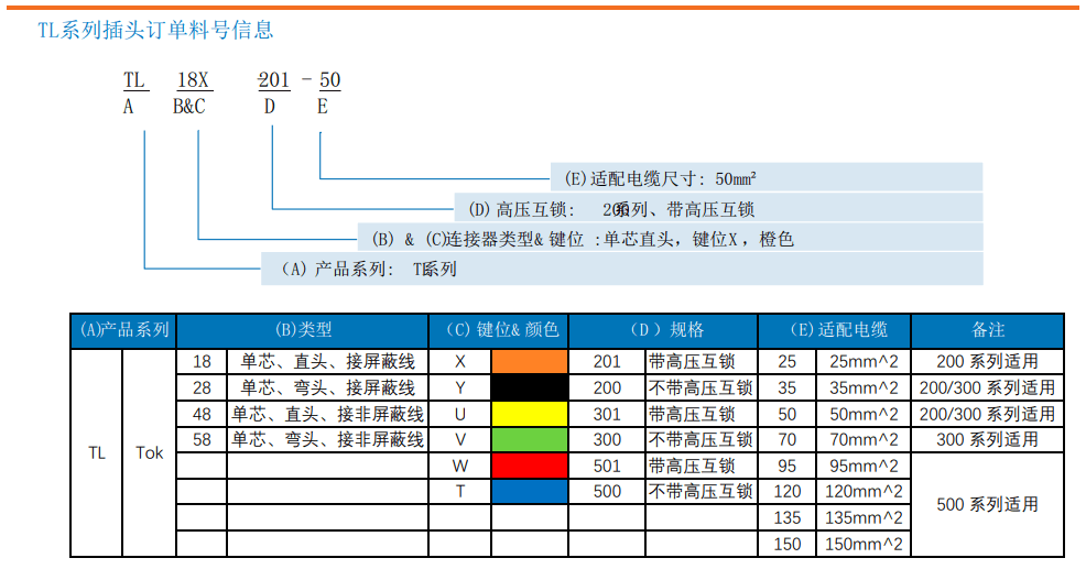 如果您覺(jué)得TL500系列,無(wú)法滿(mǎn)足您的需求,可以咨詢(xún)我們的工防師,讓他們根據(jù)您的需求推薦適合您的產(chǎn)品。TL系列產(chǎn)品,可選電流分別是100A,200A,300A,400A,500A,600A,有直彎兩種方向,可選擇帶不帶互鎖功能。